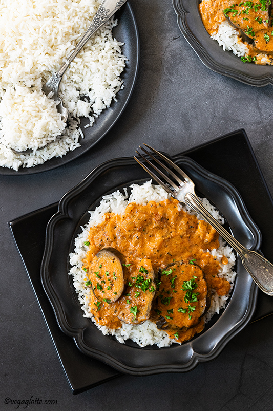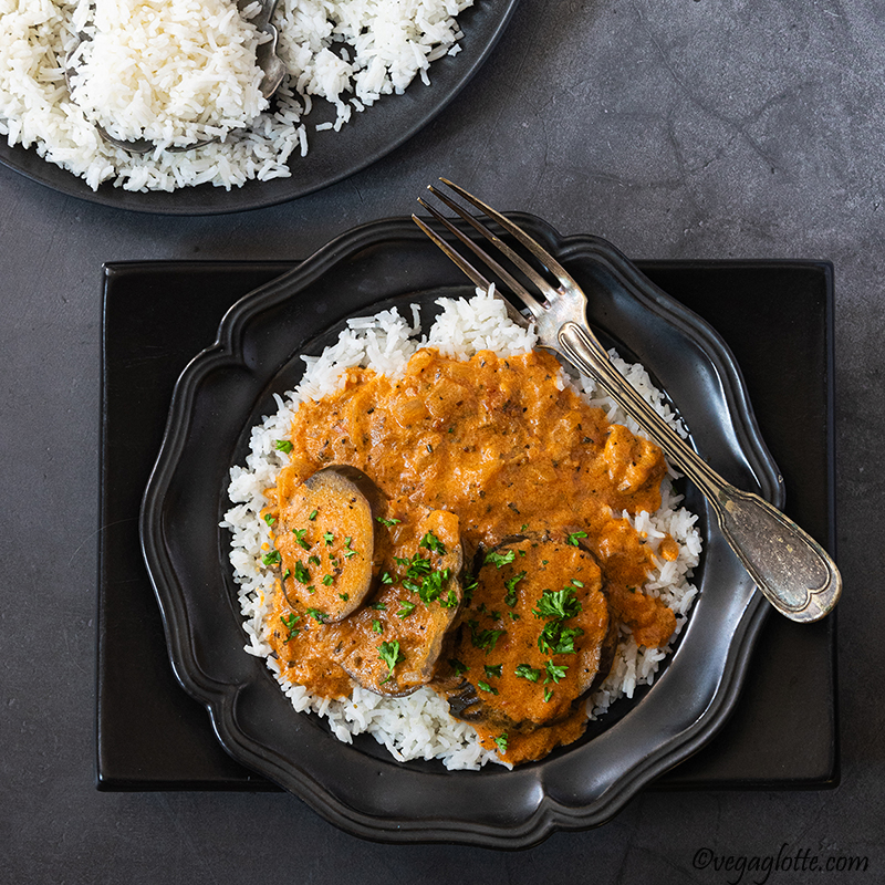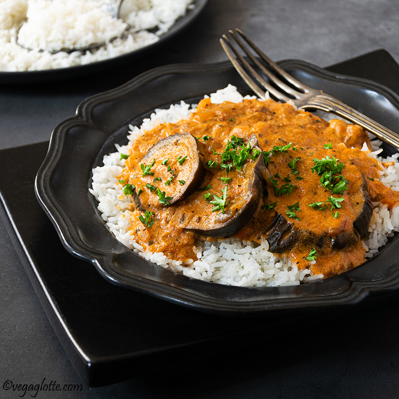Aujourd’hui je te partage ma recette fétiche de fin d’été que j’ai perfectionnée au fil des années : les aubergines à la sauce tomate et à la crème. Au début, je voulais reproduire une recette de mon père dont je gardais un souvenir gourmand, mais peu à peu je l’ai adaptée à mes goûts actuels, de sorte qu’elle se trouve au croisement des cultures (comme moi 😉). Voici donc une recette un peu russe, un peu indienne, un peu italienne : ce qui compte, c’est le goût, non ?