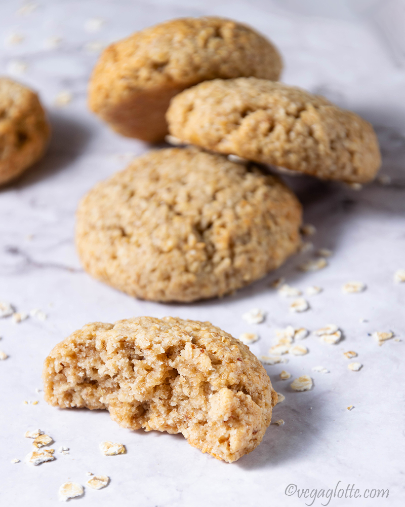 Ca faisait un moment que j’avais envie de les reproduire en version végétale quand une promo sur les flocons d’avoine dans le supermarché local m’a décidé de passer à l’acte. Quelle surprise de découvrir que la recette classique était déjà presque végétalienne : j’ai juste remplacé le beurre par de l’huile et fait l’impasse sur le miel (présent en toute petite quantité).